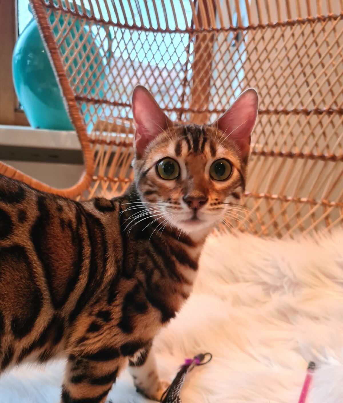 Onze drijfveer? Dat is de liefde voor de Bengaal! Ze hebben een prachtige exotische uitstraling Je kunt je bengaal leren aan een tuigje te lopen! Je kunt ze leren apporteren! Dit ras is ontzettend aanhankelijk! Meer foto's